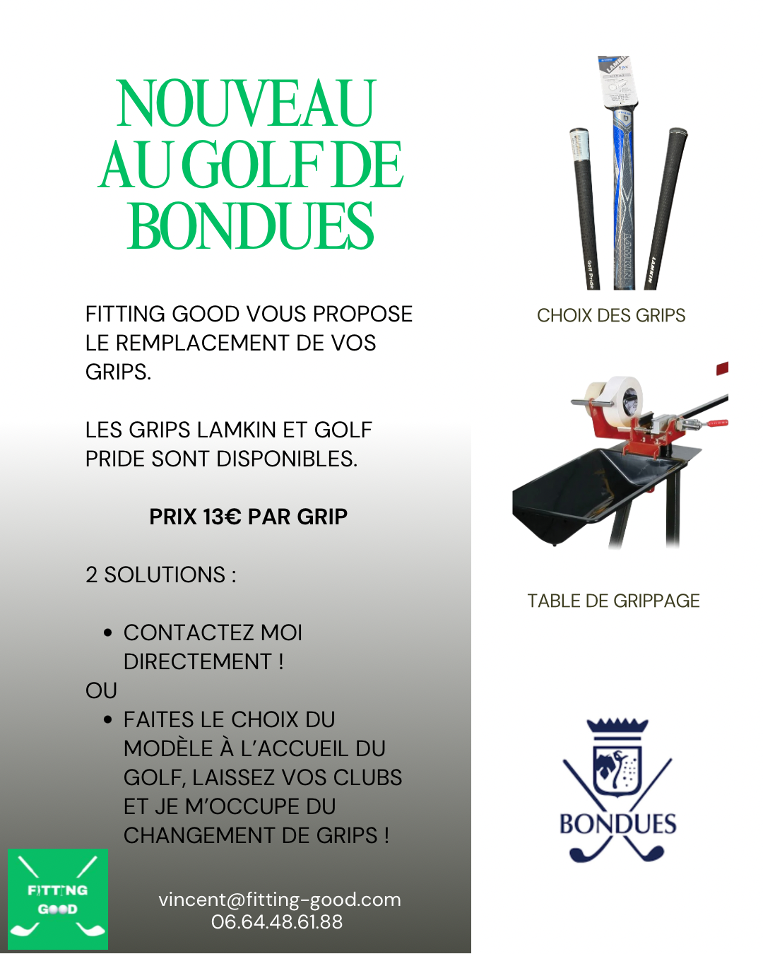 Le Golf de Bondues est heureux de proposer à ses membres et visiteurs un nouveau service de remplacement de grips, en partenariat avec Fitting Good.